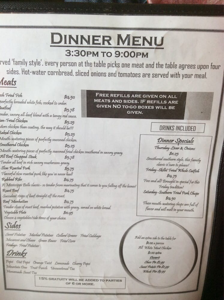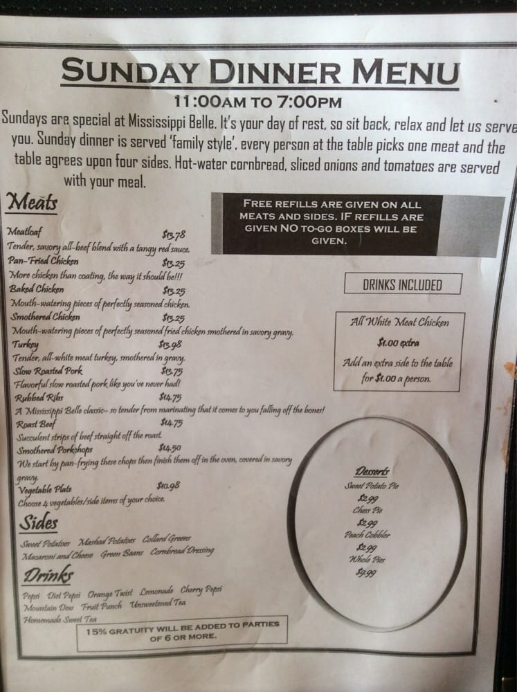 Mississippi Belle offers authentic Southern soul food in Indianapolis. With a variety of dishes like Beef Manhattan, Smothered Chicken, and Baked Chicken, this restaurant caters to those craving hearty and flavorful meals. The family-style setup allows for a communal dining experience, perfect for sharing with loved ones. Renowned for their fried chicken and homemade sides like mac and cheese and sweet potatoes, Mississippi Belle delivers on both taste and quality. The cozy atmosphere and friendly service make dining here feel like coming home. Cash-only policy adds to the charm, ensuring a classic dining experience. If you're in the mood for comfort food that satisfies the soul, Mississippi Belle is the place to be.